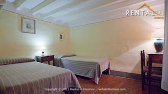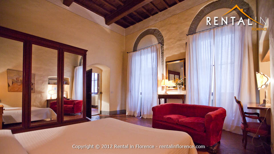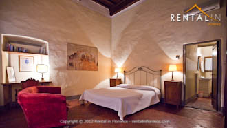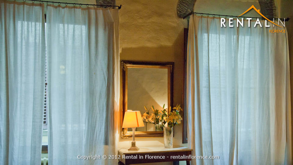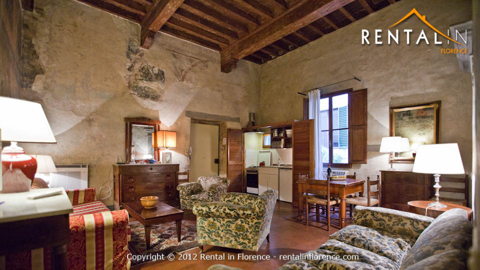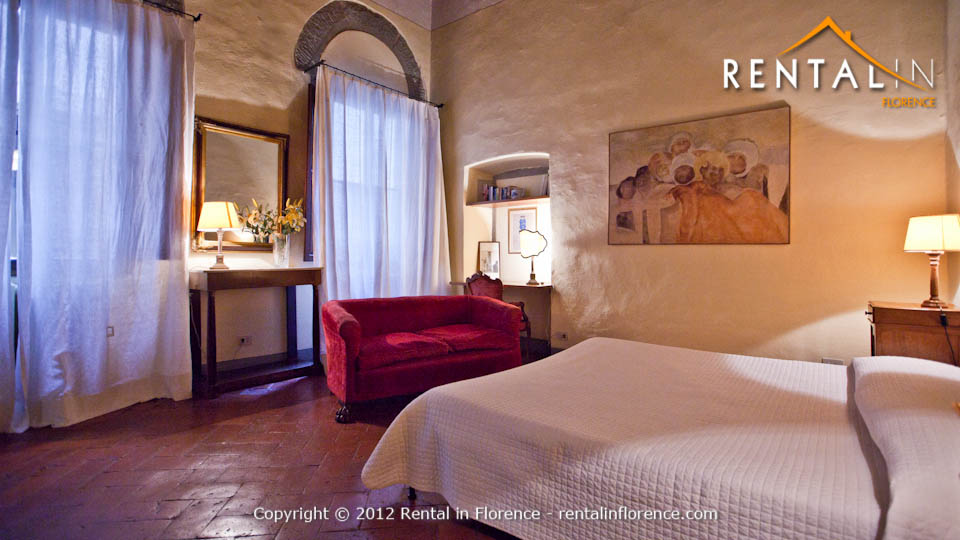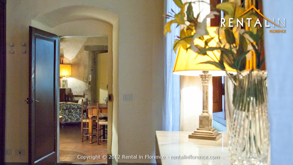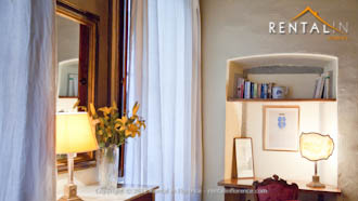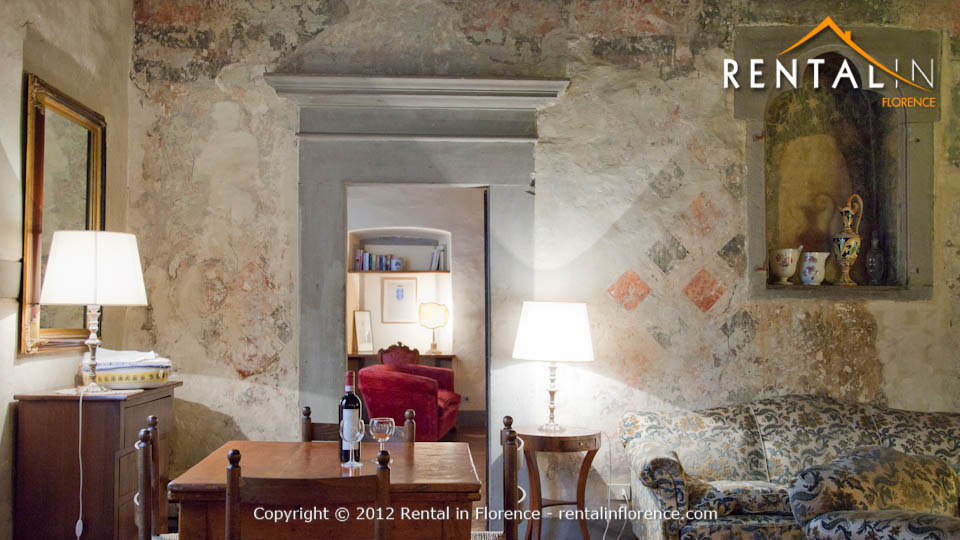 Splendide appartement de style médiéval, situé au premier étage d'un immeuble de l’An 1300 sans ascenseur. Au rez-de-chaussée on trouve un très beau salon avec des murs peints avec fresques, divan lit matrimoniale, tv flat, angle cuisine, une grande chambre matrimoniale et salle de bain avec baignoire. Au niveau supérieur on accède à une chambre avec des lits séparés et salle de bain avec douche. Équipé de tous conforts : Air conditionné, chauffage autonome, Wifi gratuit, téléphone, cuisine complète de vaisselles, four, réfrigérateur, cafetière italienne, théière, grille-pain, équipement pour le nettoyage de la maison, machine à laver, étendoir, fer et table à repasser. Mobilier d'antiquité d'excellente qualité, tapisseries et peintures à fresques complètent ce très élégant appartement, Unique parmi nos propositions.
